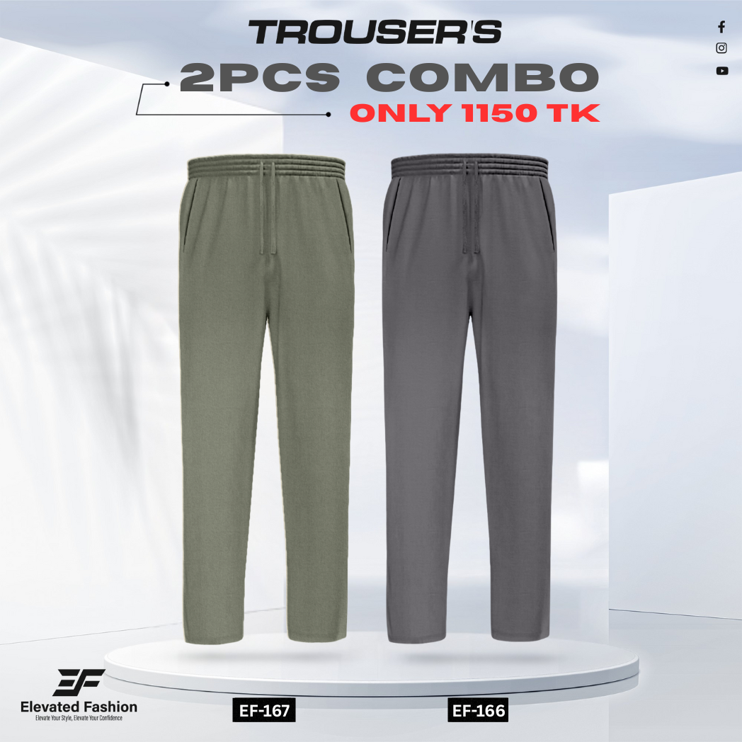 Premium Cotton Trouser- Combo of 2 – (Olive Green & Dark Gray) – EF166/167