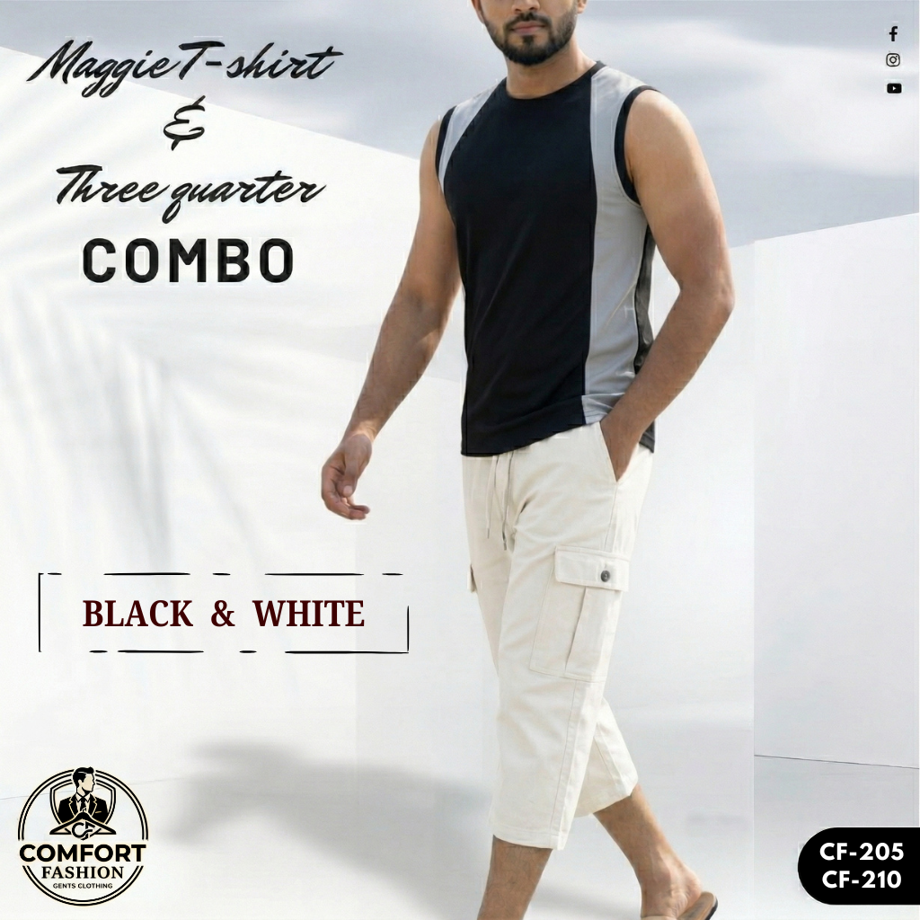 Premium Maggie T-shirt & Three Quarter Combo – (Black & White) – CF-205/210